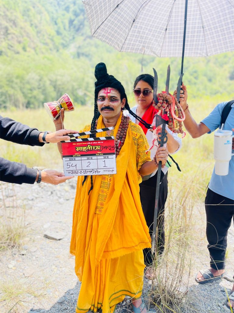 इटहरी/ हाल म्याग्दीको दरबाङ क्षेत्रमा छायांकन भइरहेको नेपाली फिल्म ‘माइतीघर’ को छायांकन सेटबाट चर्चित हास्य अभिनेता केदारप्रसाद घिमिरे ‘माग्ने बुढा’को नयाँ लुक्स सार्वजनिक गरिएको छ । उनको यो दोश्रो पटक लुक्स सार्वजनिक भएको हो। यसअघि उनको खाटमा बसेर हसिलो मुहारमा मोबाईल चलाउदै गरेको लुक्स सार्वजनिक भएको थियो। सो बेला धेरैले उनको मुखिया लुक्स भनेर चर्चा चलेको थियो भने हालै सार्वजनिक लुक्समा उनी त्रिशुल र डमरु बोकेका, रुद्राक्षको माला र जटाधारी स्वरूपमा शिवभक्त बाबाको भूमिकामा देखिएका छन् ।