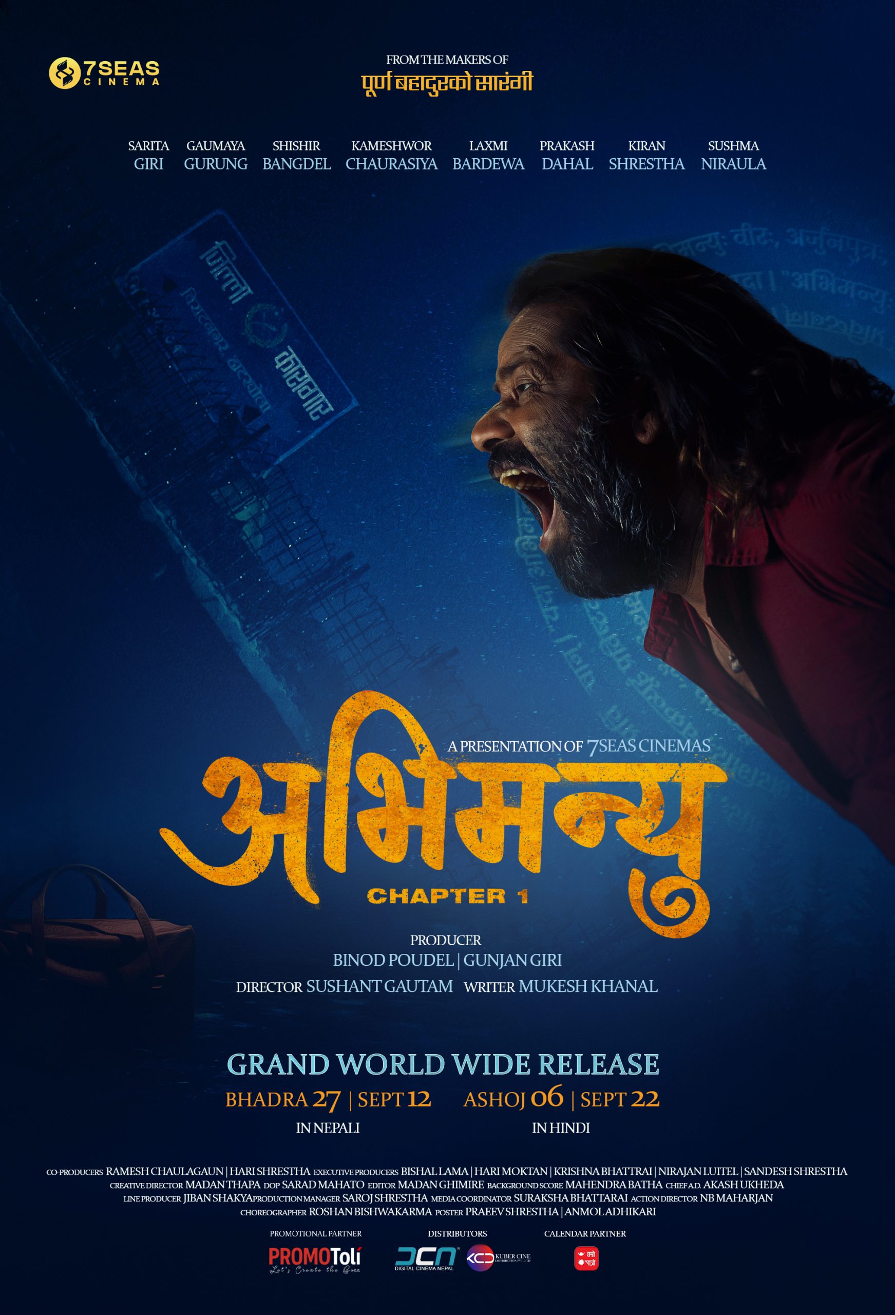 विनोद पौडेल र गुञ्जन गिरी निर्माता रहेको फिल्ममा रमेश चौलागाई र हरि श्रेष्ठ सह–निर्माता छन् । कार्यकारी निर्मातामा विशाल लामा, हरि मोक्तान, कृष्ण भट्टराई, नीराजन लुइँटेल र सन्देश श्रेष्ठ छन् । शरद महतोको डिओपी, मदन घिमिरेको सम्पादन, जीवन शाक्यको लाइन प्रोडक्सन तथा आकाश उखेडा सह-निर्देशकको रूपमा काम गरेका छन् । पोस्टरमार्फत नै कथाको गहिरो तहको संकेत गर्ने प्रयास गरिएको ‘अभिमन्यु : च्याप्टर–१’ ले अब ट्रेलरमार्फत त्यो कौतुहल अझ बढाउने अपेक्षा गरिएको छ ।