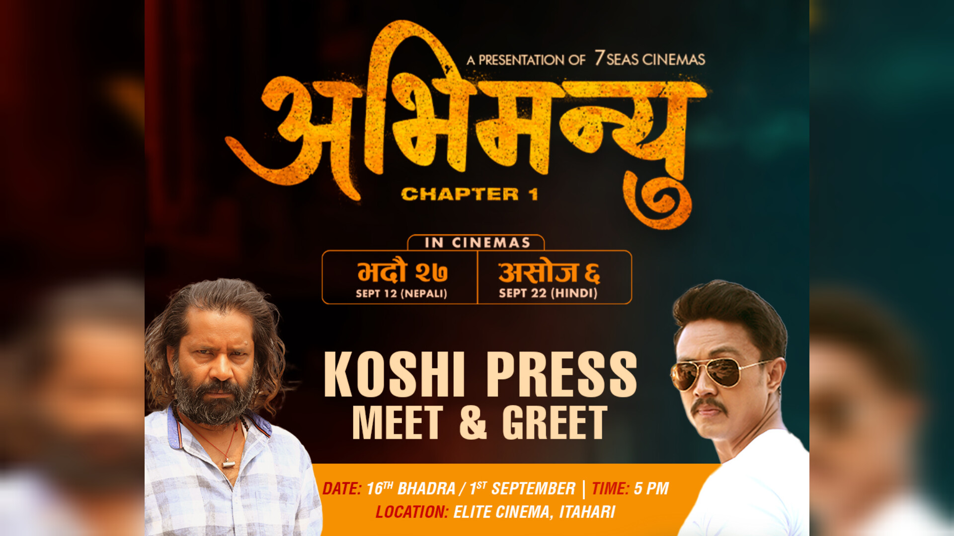 इटहरी/ प्रतिक्षित फिल्म ‘अभिमन्यु : च्याप्टर–१’ को प्रचार–प्रसार अभियान कोशी प्रदेशबाट औपचारिक रूपमा सुरू भएको छ । कोशी प्रदेशको प्रमुख केन्द्र मानिने इटहरीस्थित ईलाइट सिनेमा हलमा सोमबार साँझ ५ बजेदेखि आयोजित पत्रकार सम्मेलन तथा अतिथि भेटघाट कार्यक्रममार्फत प्रचार अभियानलाई सुरुवात गरिने भएको हो । कार्यक्रममा फिल्मका प्रमुख कलाकार कामेश्वर चौरसिया, किरण श्रेष्ठ लगायतको उपस्थिति रहने भएको छ ।