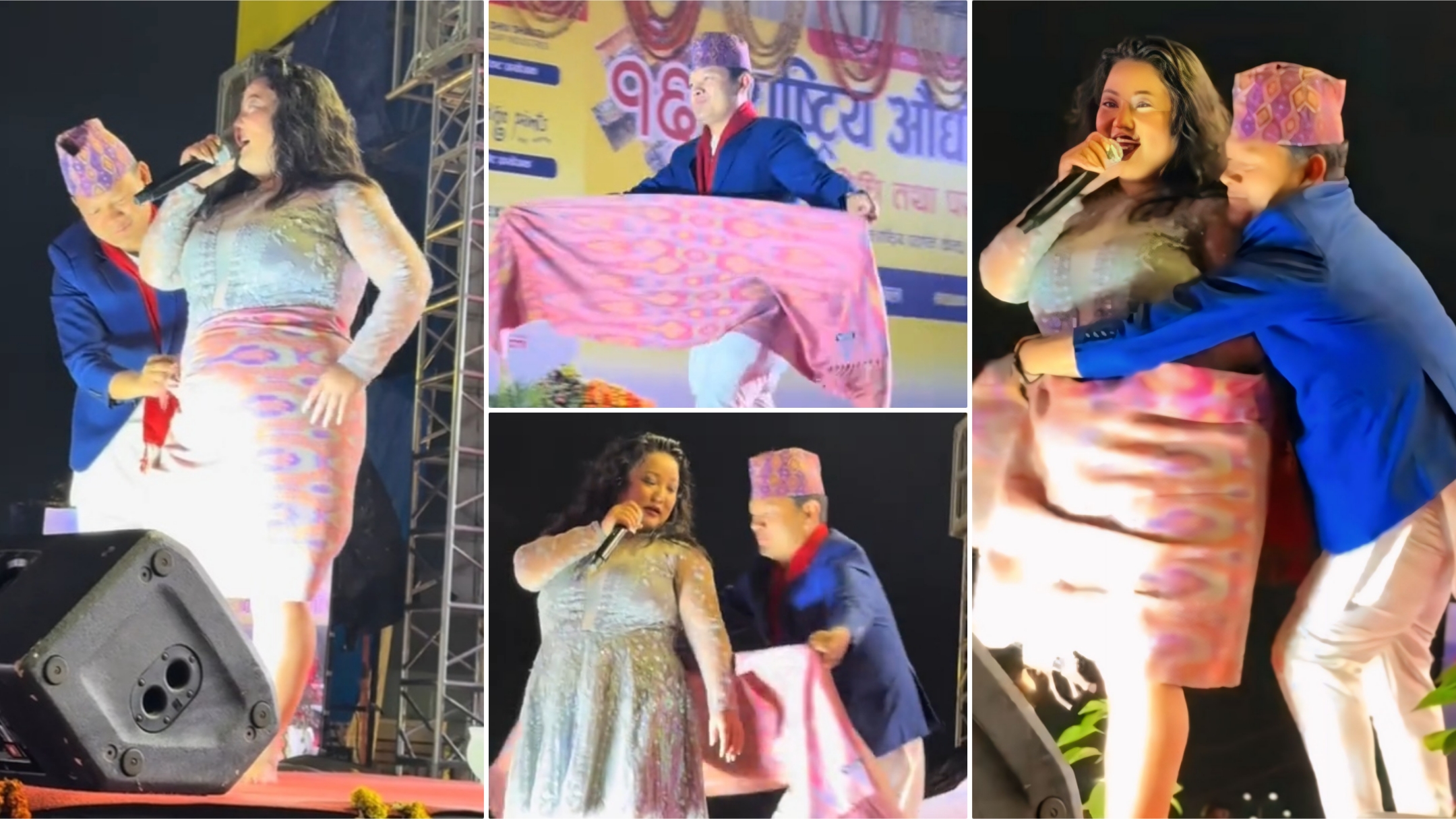 इटहरी/ चर्चित लोक दोहोरी गायिका ज्योति मगर आफ्नो गायकी र स्टेज पर्फमेन्सका कारण सधैं चर्चाको केन्द्रमा रहन्छिन् । उनको डबलअर्थि उत्तेजक अनि बोल्ड अभिव्यक्ति र पहिरनका कारण उनका आलोचक र प्रसंशक दुवै बराबर दर्शक छन् । तर, हालै बुटवलमा जारी राष्ट्रिय औद्योगिक प्रदर्शनीको मञ्चमा एउटा यस्तो दृश्य देखियो, जसले अहिले सामाजिक सञ्जालमा चर्चा पाइरहेको छ ।
