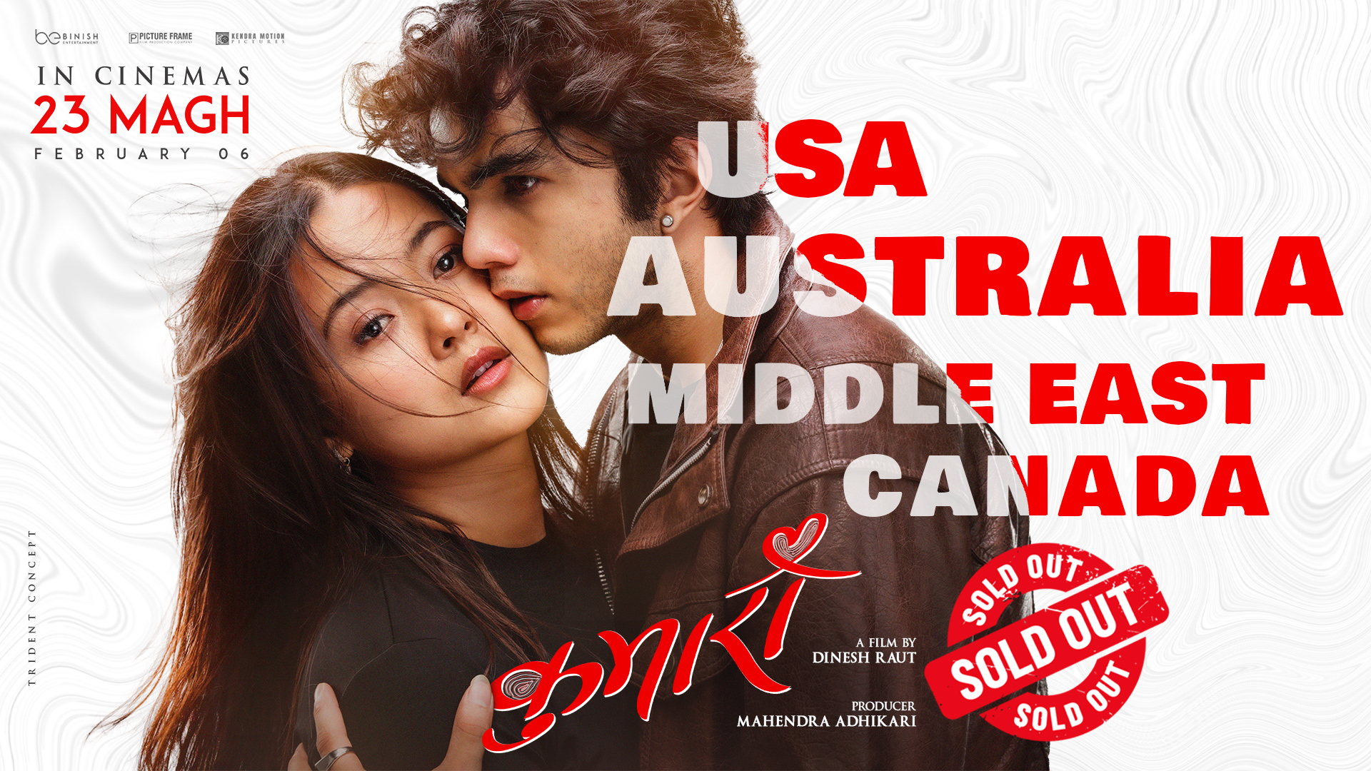 ट्रेलर र गीतसङ्गीतले सिर्जना गरेको ‘हाइप’ का कारण फिल्म रिलिज हुनुअगावै ओभरसिज प्रदर्शन अधिकार धमाधम बिक्री भएको निर्माता महेन्द्र अधिकारीले जानकारी दिएका छन् । विदेशमा रहेका नेपाली दर्शकको अत्याधिक मागलाई सम्बोधन गर्दै निर्माता टिमले अमेरिकामा आत्रेय प्रोडक्सन र कोसेली कोडोराडो, अस्ट्रेलियामा असकास्ट नेपाल र थ्री केजी इभेन्ट्स, क्यानडामा मेरो इभेन्ट्स र मध्यपूर्वमा नेपफिल्म