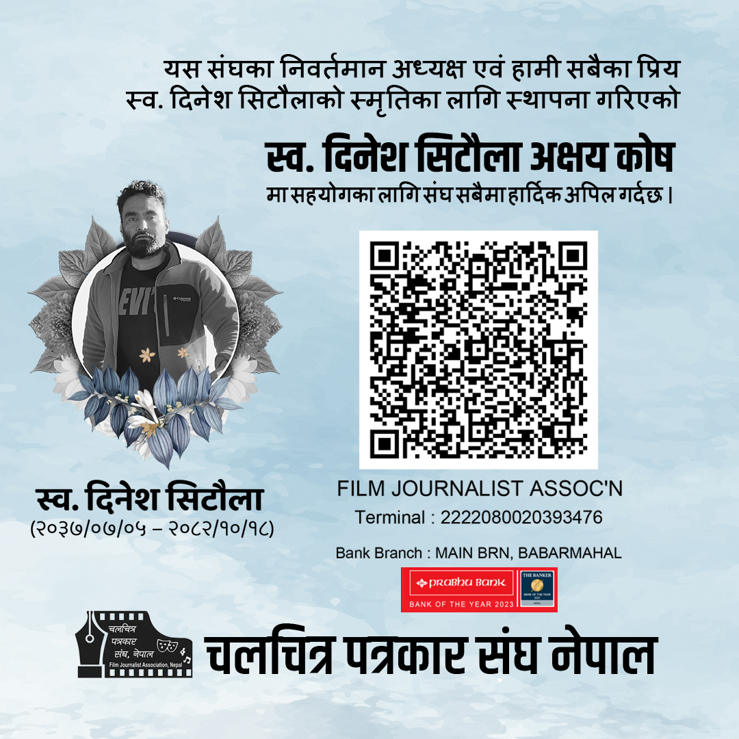इटहरी/ नेपाली फिल्म र फिल्मी पत्रकारिता क्षेत्रलाई एउटै सुत्रमा बाँध्न महत्त्वपूर्ण भूमिका खेलेका चलचित्र पत्रकार संघ नेपालका निवर्तमान अध्यक्ष तथा द सिनेमा टाइम्स का सञ्चालक स्वर्गीय दिनेश सिटौलाको सम्झनालाई चीरस्थायी बनाइने भएको छ । उनको १३औँ पुण्यतिथिको अवसरमा संघद्वारा आयोजित श्रद्धाञ्जली सभामा उनको नाममा ‘स्मृति पुरस्कार’ र अक्षय कोष स्थापनाको ऐतिहासिक घोषणा गरिएको हो ।
