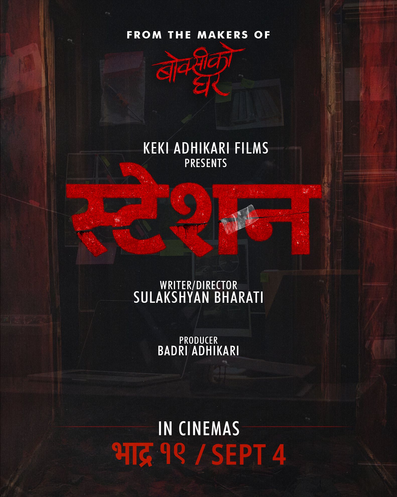 ‘केकी अधिकारी फिल्मस’ को ब्यानरमा निर्माण हुन लागेको यस फिल्ममा पनि पुरानै सफल टिमको जादु हेर्न पाइनेछ । सुलक्षण भारतीको कथा तथा निर्देशन रहने फिल्मको निर्माताको रुपमा बद्री अधिकारी रहनेछन् । आगामी भदौ १९ गतेलाई प्रदर्शन मिति तय गरिएको छ । घोषणासँगै सार्वजनिक गरिएको फिल्मको थिम पोस्टरले दर्शकमा निकै कौतूहल जगाएको छ । एउटा पुरानो काठको दराजजस्तो देखिने आवरणभित्र केही अस्पष्ट सामग्रीहरू राखिएको उक्त पोस्टरले यो फिल्म गम्भीर सामाजिक विषयवस्तुमा आधारित रहने संकेत गर्छ ।