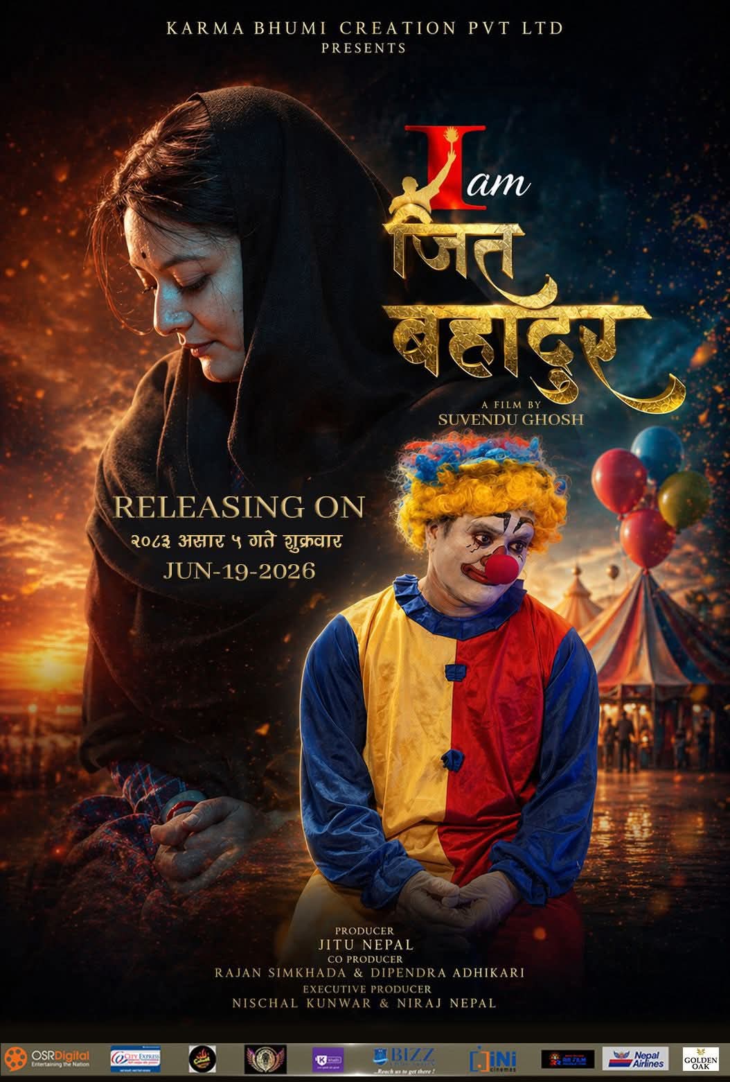 इटहरी/ सधैं पर्दामा दर्शकलाई हँसाउने हास्यकलाकार जितु नेपाल मुन्द्रे यसपटक भने आफैं रोएका छन् । अनुहारमा रङ्गीचङ्गी ‘जोकर’ को मेकअप, तर आँखाहरूमा गहिरो उदासी र पीडा ! दर्शकमाझ निकै कौतूहलता जगाउने यी दृश्यहरू हुन्- उनको आगामी फिल्म ‘आई एम जित बहादुर’ को । कर्म भूमि क्रिएसन प्रा. लि. को प्रस्तुति रहेको यस फिल्मका तीनवटा फरक र अर्थपूर्ण फर्स्ट लुक पोस्टरहरू भर्खरै सार्वजनिक भएका छन् ।