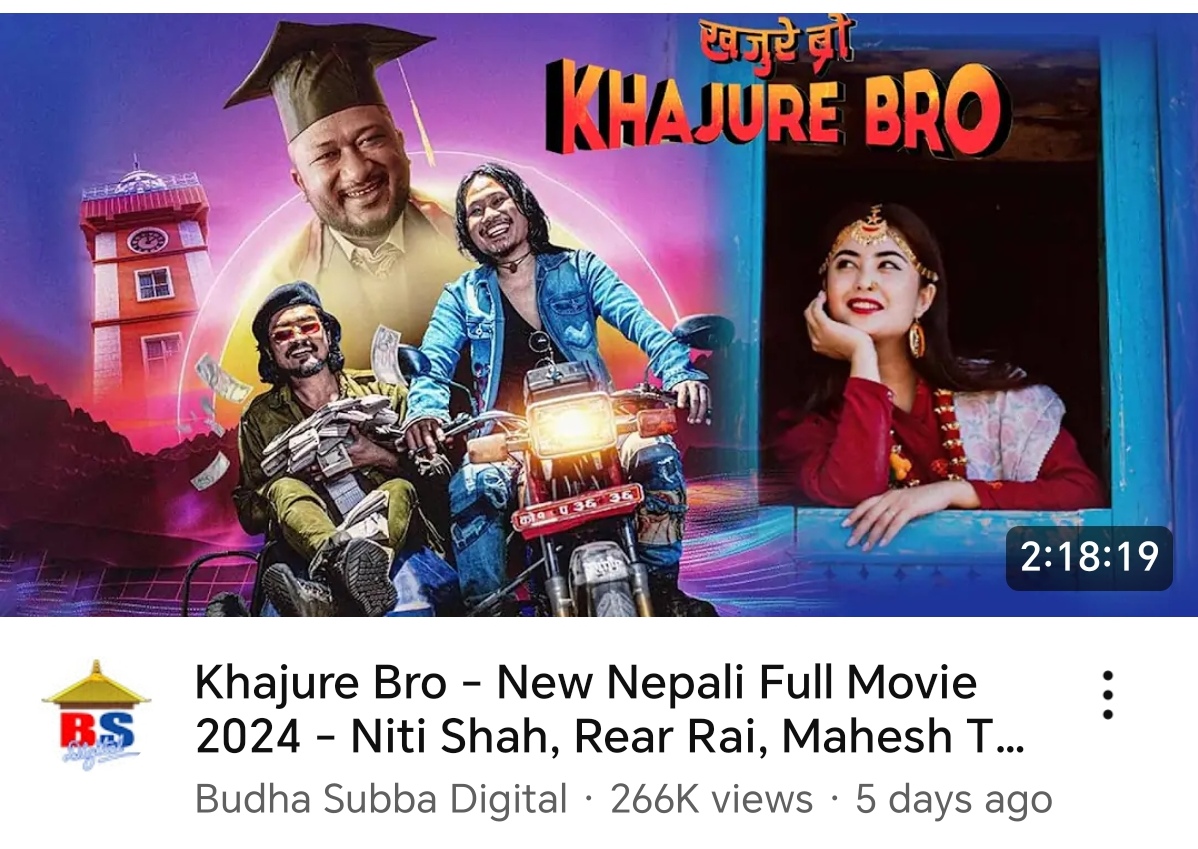 इटहरी/ विशेषगरी धरानमा छायांकन गरिएको र धरान उपमहानगरपालिकाका लोकप्रिय मेयर हर्क साम्पाङको समेत अभिनय रहेको भनेर चर्चा पिटिएको फिल्म ‘खजुरे ब्रो’ ले युट्युबमा समेत दर्शक तान्न सकेको छैन् । यो फिल्म गएको बैशाख ३० गते सार्वजनिक प्रदर्शनमा आएको थियो । धरानमा ग्राण्ड प्रिमियर पनि गरियो । तर, सिनेमा हलमा रिलिजको भोलिपल्ट देखी नै बेखबर बन्न थालेको यो फिल्मले निर्माताको गोजि मात्रै रित्यायो ।